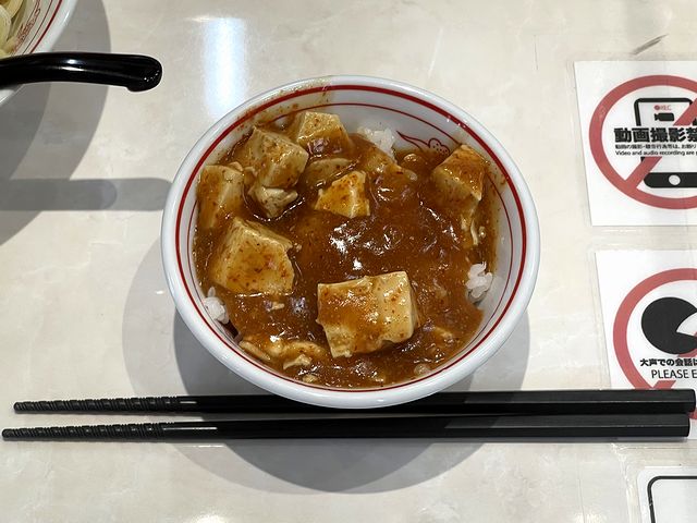 で、食券は買ったものの、やっぱり麻婆豆腐単品か、冷し味噌ブチスープの方が良かったかなと正直思っていたのですが、一口食べて、これが正解。というのも、中本さんでいただくのは久しぶりなこともあり、唐辛子の刺激がものすごく強く感じられたので、ご飯の存在でそれが薄まるこれにして良かったというか。(逃げ場がない麻婆豆腐や、こちらのお店で一番辛い冷し味噌だとどうなっていたか。)