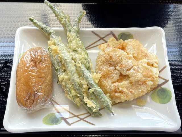 【おいなり 132円 と いんげん天 154円 と 鶏天 176円】
