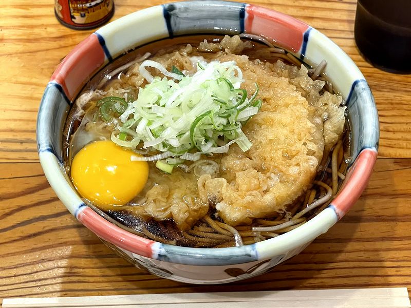 一方かき揚げは、きわめて駅そばらしい、全体がほぼ衣というタイプ。ツユに良く馴染み、そうすることによって味にコクをプラス。また馴染んだところをソバと一緒に口に入れると、これまた堪りせん。更に途中から、玉子を崩せばこれが、また。黄身とソバとかき揚げとツユが一緒に口に入ると、何とも幸せな気持ちになれました。