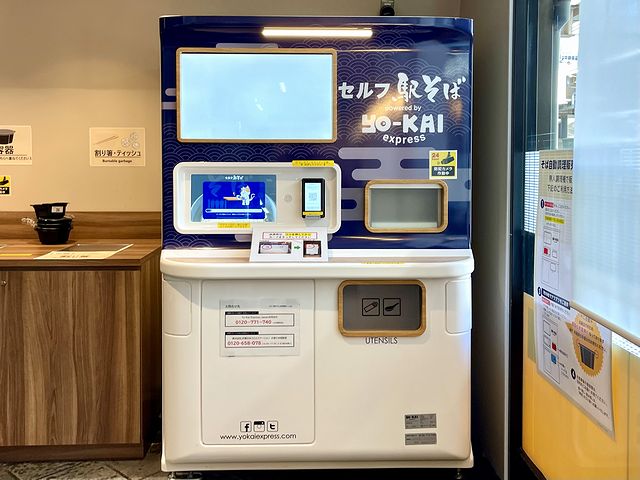 それでこのお店で使われている無人全自動調理のシステムは『Yo-Kai Express(妖怪エクスプレス)』というのですが、それを作っているのは、なんと、シリコンバレー発祥のフードベンチャー企業で、創業者は台湾の方とのこと。(なんでも日本のレトロ自販機に触発されて開発したそうで。)よって海外の方が普及していて、日本国内だと、羽田空港空港やくまもと空港、首都高速のいくつかのパーキングエリア、関東圏のガソリンスタンドやショッピングセンター、更にはここ上野駅の地下3回新幹線コンコースにも設置してあるようですが、いずれもラーメン、うどんの調理機で、そばはこの店舗が初めてらしいです。(海外だと丼物や鍋物も商品化されているとのこと。)ちなみにそばは4種類(たぬきつね、紅しょうが天、ちくわの磯辺天、柚子香る豚肉)ありますが、それらメニューの開発は、JR東日本クロスステーションが担当したそうで。