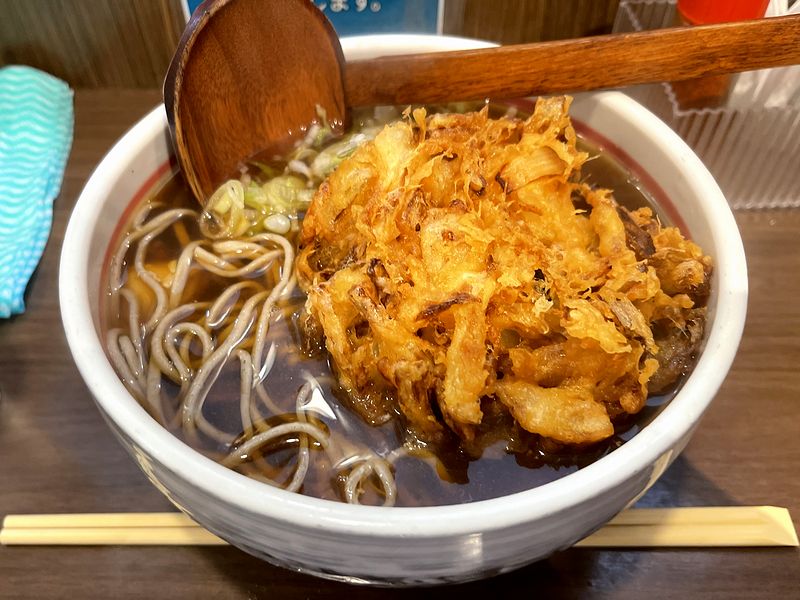 またかき揚げは自家製でしようか。(お伺いした時、ちょうどタネの野菜仕込んでいるところっぽかった。)タネは、玉ネギ、長ネギ、ニンジン、あとアミ海老を確認。揚げ上がりはハードというかかなり香ばしくカリッとしていますが、ツユとの馴染みは良かったです。