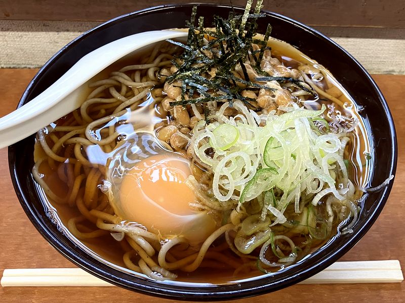 そんな中から今回は、このお店を知った時から気になっていた、納豆そばを。あと追加で玉子もお願いしました。