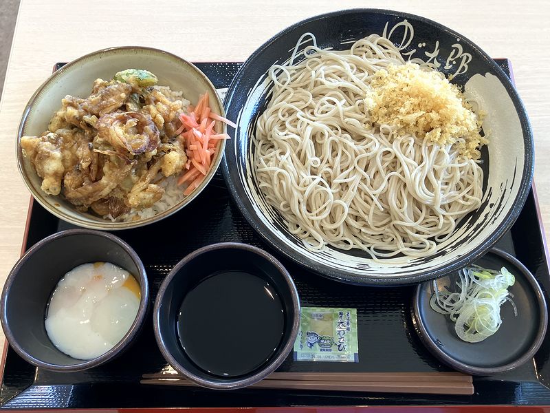 【ギッシリあさりと葱のミニかきあげ丼セット(冷) 880円 + 麺大盛り 100円 + 温泉玉子(クーポンにて無料)】