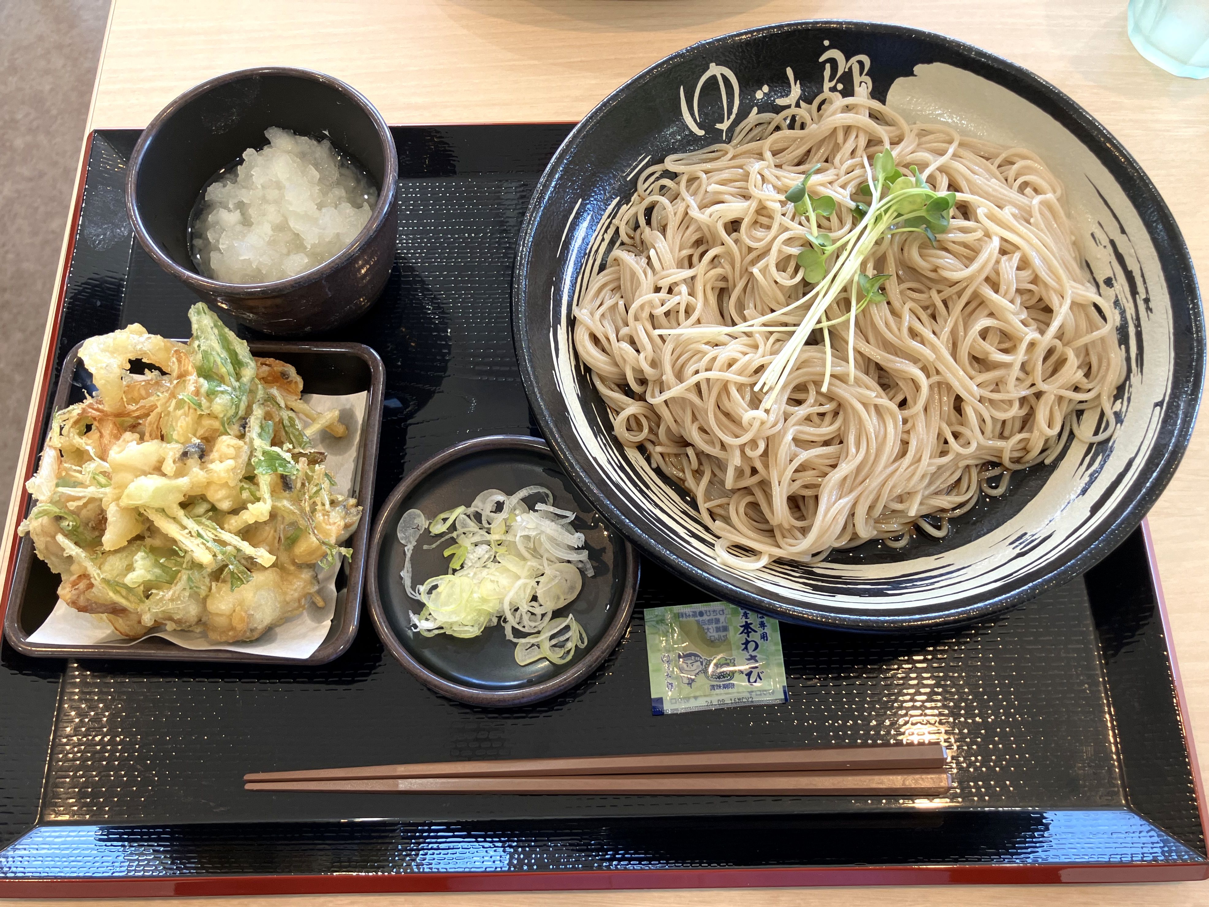 と、はじめはかき揚げを中心にいただきましたが、あとはワサビを加えたソバと交互にいただき、最後は鬼おろしとソバと一緒に口に入れれば、これが、もう。