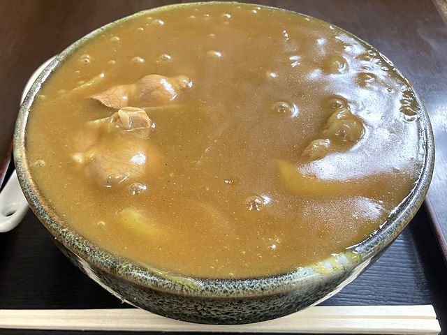 こちらは、家人がいただいた品。丼の縁ギリギリ注がれたカレー味のツユが特徴的というか、他のかけそば系の品もそんな感じなれど、カレー南ばんだとそれがより一層強調される気が。