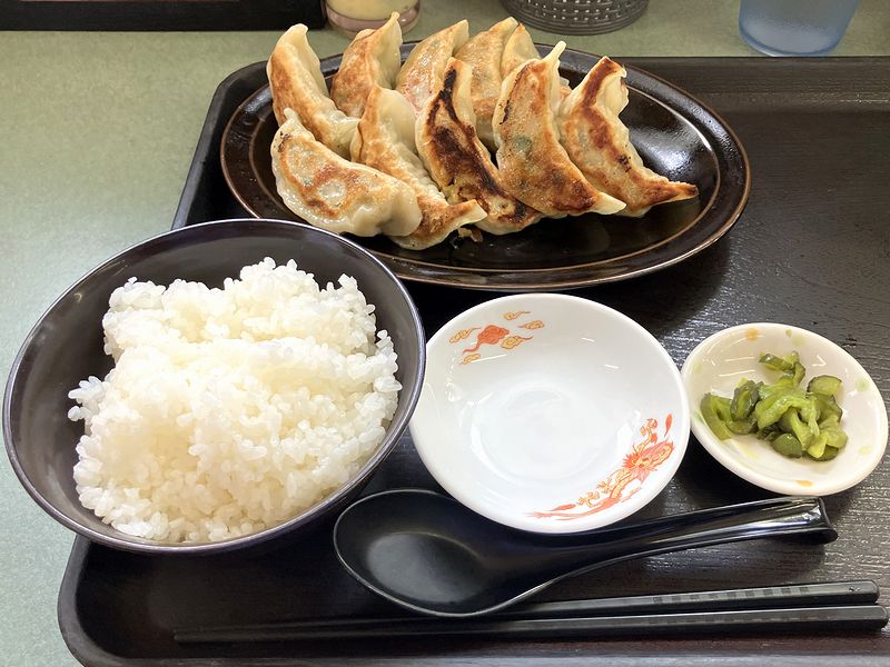 ただ件の同行者は、お品書きを見て「ニラレバ定食こんなに高かったんだっけぇ?」と言い、それより少しだけ値段が安い品を注文。それを横目に見つつ、(すんなり入店出来たので時間に余裕が出来たこともあって)、別の品でもいいやとばかりに、私は「餃子定食ダブル」!と。ちなみに、こちらのお店(さくら市氏家にある本店)で餃子を食べるのって、30年ぶりくらいからかもしれません。あと正直、ダブルにする必要はなかったのですが、ストレス感じると、たくさん食べたくなりますよね!!(昨日もそんなこと言ったような。)