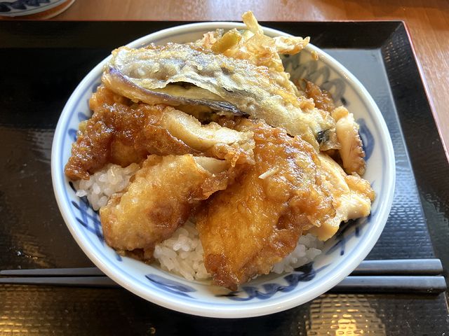 で、揚げてから暫く立った(冷蔵庫で取っておいたような)色々な天ぷらを、タレで煮るとこによって温めご飯に載せたものなのですが、それが逆に家庭の味(実家で祖母が、昨晩の天ぷらを甘辛く煮て朝食に出してくれたことを思い出す。)っぽくで、個人的には好きなんですよね。