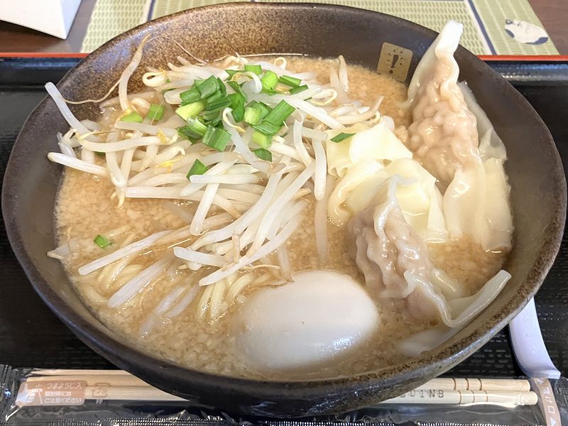 具はデフォルトで入るのがシャキっとした茹でモヤシと、薬味系の青ネギですが、どちらもバッチリ相性良く。それと追加した肉わんたんは、白河系などの極薄バージョンの対極というか、厚みの十分な皮に、しっかりと味の付いたボリューミーな肉餡が、食べ応え十分。味噌ラーメンにはどうかとも正直思ったのですが、皮といい餡といい、こちらの味噌ラーメンにはちゃんと相性良く。更に、これまた追加した味玉は、黄身がトロトロのタイプで、とてもいい塩梅です。