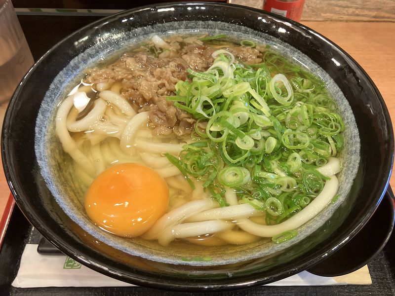 ちなみに、券売機のメニューが豊富で、更にはセットメニューも沢山有って迷いまくりましたが、そんな時こそ定番をというわけで、今回は肉うどんに玉子追加という組み合わせでいただくことにしましたが、食券提出からほとんど待たずに登場しました。