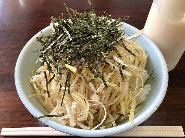 して、始めはマヨを掛けずにいってみると、ラーメン同様、シャキシャキのネギに絡んだタレの塩梅が程よく。これだけでもご飯が進みますが、マヨを掛けると更にパワーアップというか、個人的に(マヨ自体は好きだけど)ご丼物にマヨはそれほど得意ではないものの、こちらのはむしろ掛けた方が好みの味わいになるというか。あとニンニク投入しても良かったなぁ、と、食べ終わってから思いました。