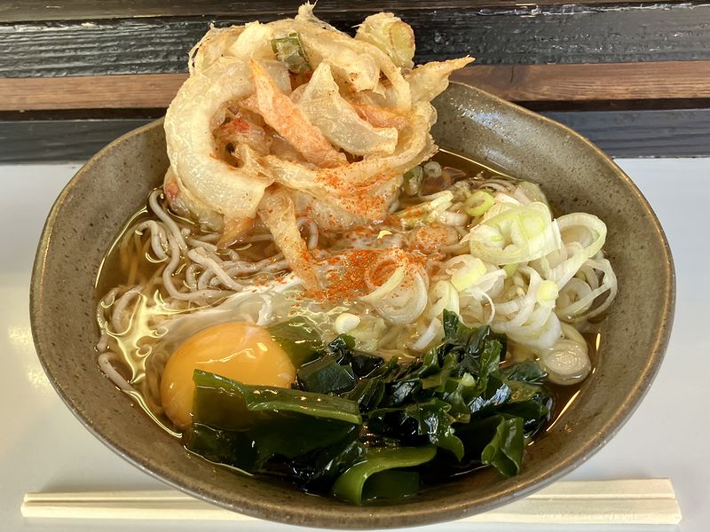そして具のかき揚げは、揚げ置きですが衣がクリスピーで、ツユとよく馴染むタイプ。タネは、タマネギ、ニンジン、そして長ネギあたりでしょうか。タマネギは甘みを引き出され、長ネギには香ばしさを感じるなど、タネの火の通り加減もバッチリでした。