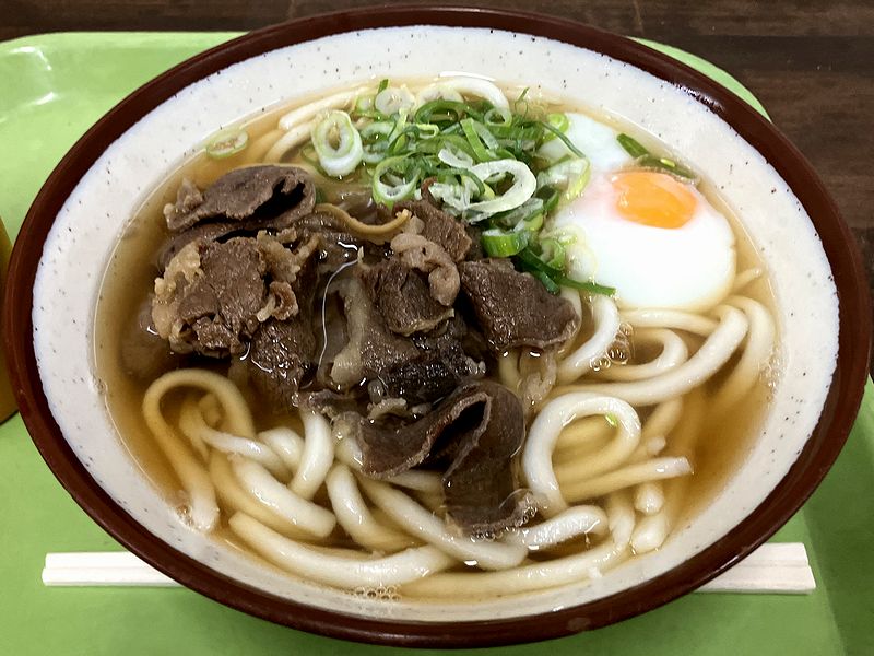 そんな中から苦労して選んだのが、こちらのすき焼きうどん。別にすき焼きが載っているわけではなく、肉うどん+温泉玉子の組み合わせだと、この名称になるらしいです。