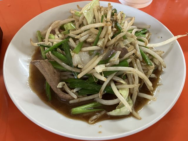 レバーは豚レバーで、野菜はニラの他、モヤシ、キャベツ、タマネギといったところでしようか。炒め加減は、シャキシャキ感を残すベストな具合。