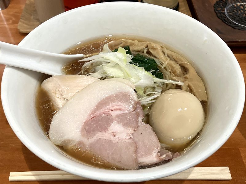 そして具は、まずチャーシューが豚肩ロース、鶏胸肉とWで載りますが、どちらもしっとりとしつつ、それぞれの肉の味も堪能できる仕上がり。それと味玉は、黄身の具合が固ゆで寄りの仕上がりですが、トロトロの半熟タイプ寄りもこちらの方が合っているような。また貝ワンタンは、以前いただいた時「貝っ!!」のエッジがかなり尖っていた記憶があるのですが、今回のはエッジは残しつつも食べやすく。更にシャクシャク感が良い穂先メンマも含めて、どれもラーメンの具としての味付けがまた良いです。