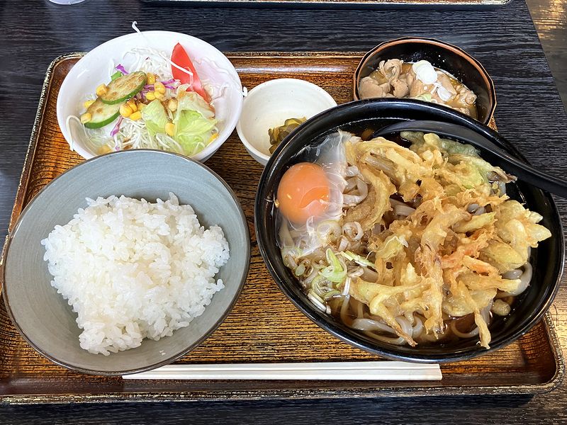 【天ぷらうどん生玉子入(氏家うどん) 700円 + Sセット 400円】
