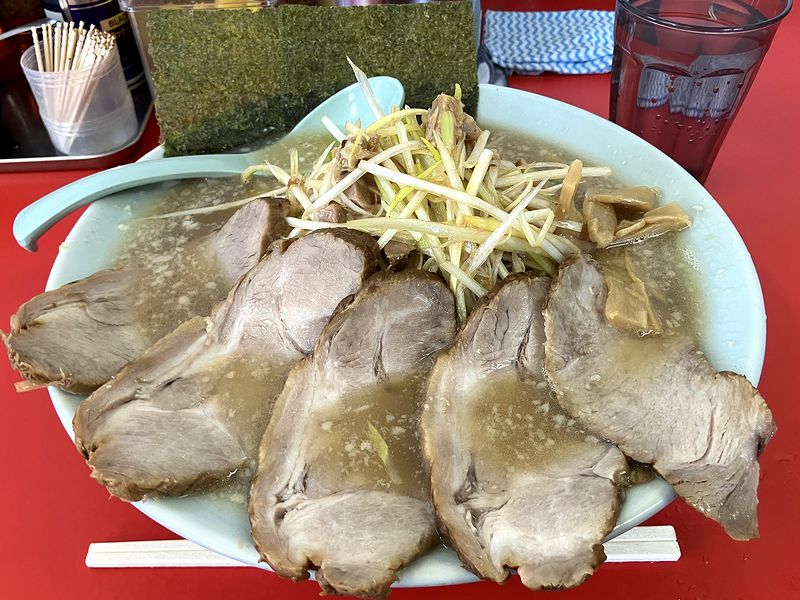 まず登場して驚いたのが、ダイナミックなチャーシューの盛り付け。かつてこの場所にあった氏家店のチャーシュー系メニュー(の、一例。詳しくは「ラーメンショップ 氏家店」で、当ブログを検索していただければ)も凄かったのですが、これもなかなかのボリュームというか。
