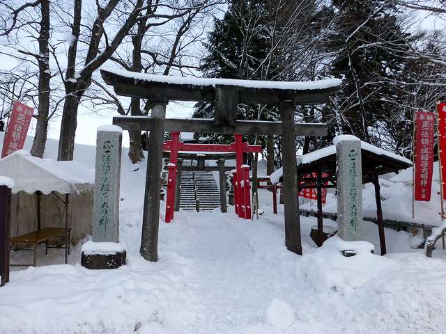 黒川城築城時に縄張りに苦心していた蘆名直盛が、田中稲荷神社に勧請したところ霊夢があり、目覚めると降り積もった雪の上に狐の足跡があって、それを頼りに縄張りを築いたとの伝説があるそうで。