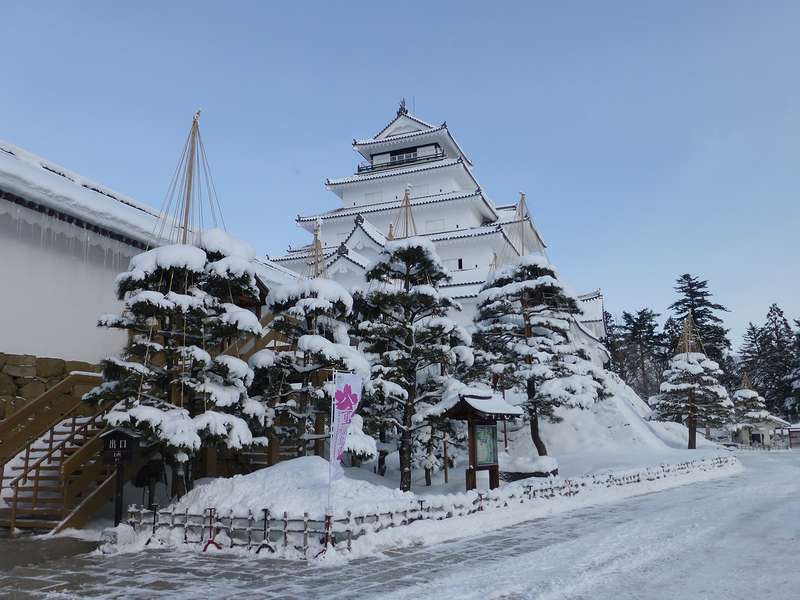 今回の旅行のルート的にはちょっと戻る形になるのですが、喜多方で朝ラーをいただいた後、午前8時過ぎに会津若松市内へ。大河ドラマの舞台なので冬でも混むだろうと思い、なら少しでも空いてる時間にと思って、開城時刻の午前8時30分に合わせてお伺いすることにしていました。