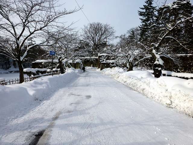 そこで、件の石碑や堀と石垣の写真を撮った後、売店で売っていたエゴマ味噌の焼き団子もいだだき満足したので、再び城内を通って、同じ市内にある次の目的地へと向かいました。