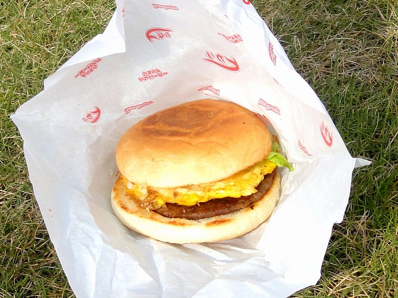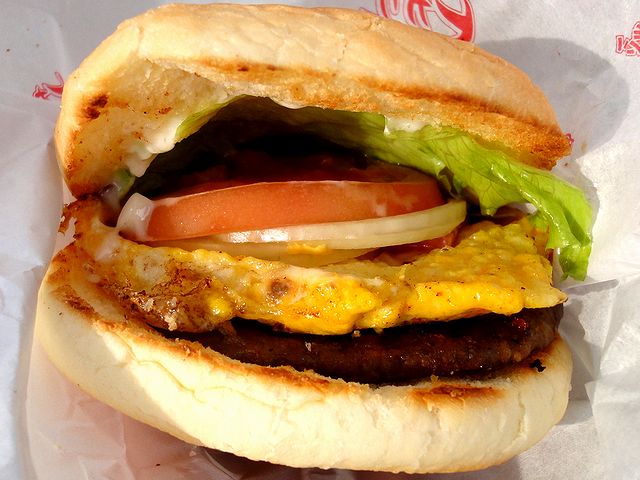 購入したのは、玉子とチーズ、そしてベーコンが入ったスペシャルなこちら。注文してから約20分程で登場したのですが、かぶりつくと、表面も焼かれたバンズは香ばしく、味付けはケチャップベースでしょうか?実に素朴な感じがするのですが、パティや様々な具材の味と一緒に味わうことでとても良い感じ。大きさは小振りですが、たっぷりな具のお陰でわりと食べ応えもありました。