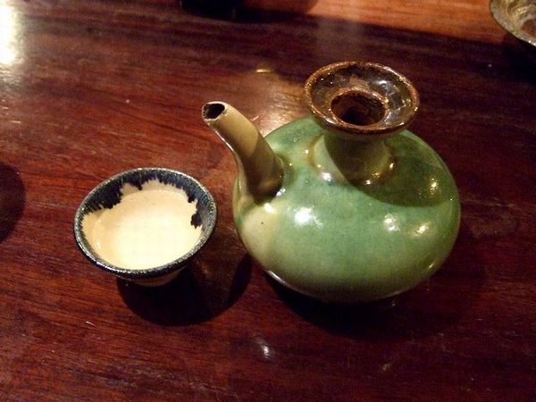 それで、オリオンビールも良いのですが、こちらのお店では泡盛を独自にブレンドして寝かせたという特製の古酒(クース)があるので、ビールで喉を湿した後でチェンジ。今回は8年ものと12年もの(他にも20年ものがありました)をいただきましたが、8年物でも個人的にツンと感じる泡盛独特の風味がだいぶ丸くなっていて、さらに12年物ではコク深く芳醇な風味が感じられるような。で、カラカラという当地独特の酒器に入って供されたそれらを、最初はそのまま飲んでいましたが、はかいき過ぎて危険な為、途中からロック、そして水割りにして飲みましたが、やっぱりちょっと勿体なかったかなぁ、と。